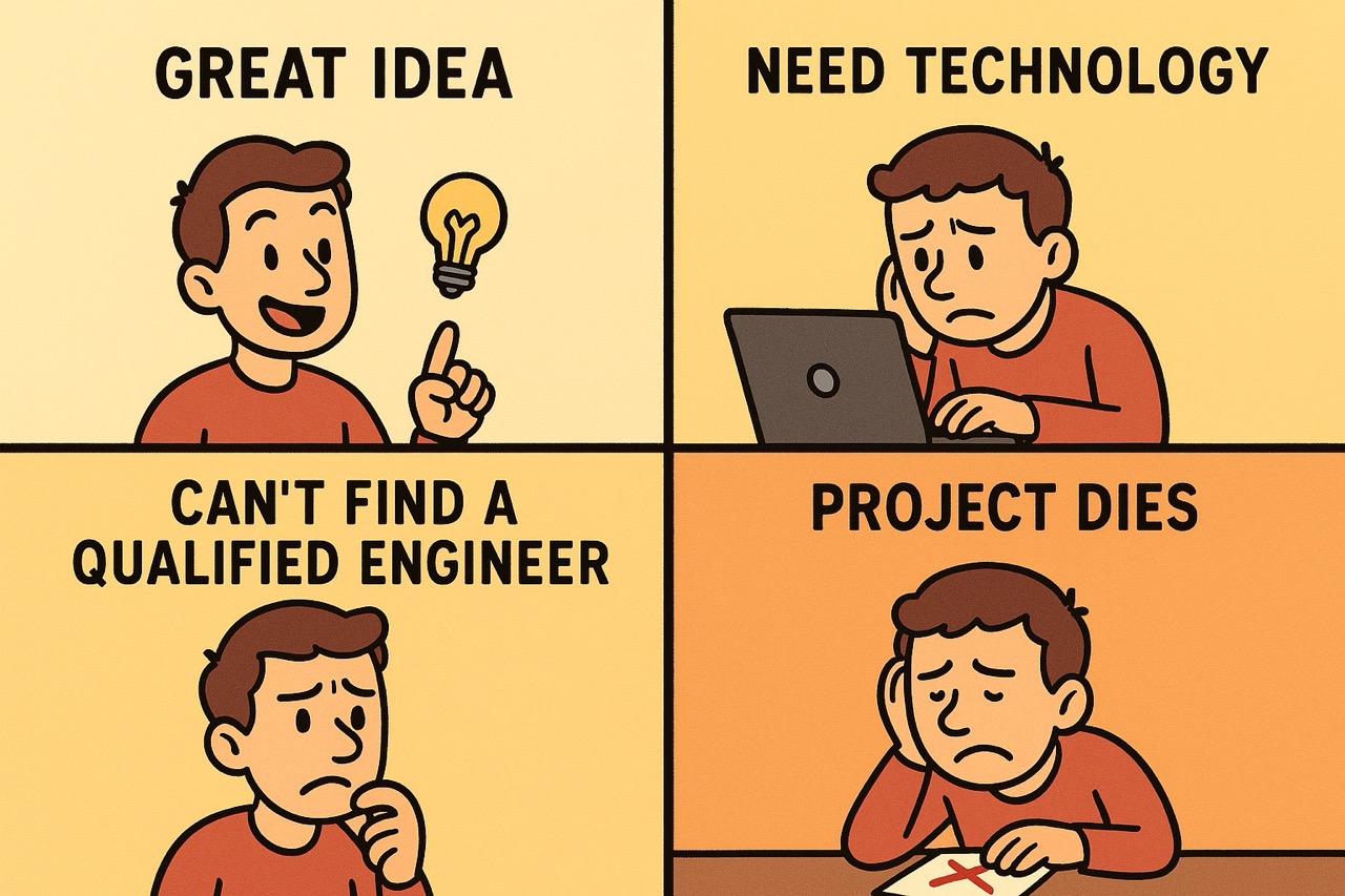 Our solution: We remove the technical bottleneck entirely. You focus on customers, sales, and validation. We handle the engineering.